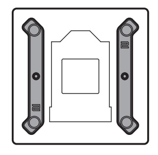 Asegúrese de que los lados numerados de los brackets o barras de montaje estén orientados hacia arriba y de que los screw caps estén bien apretados. Además, si está utilizando el M9i, recuerde que las barras deben sobresalir hacia la CPU. De lo contrario, la posición del disipador no será la correcta y podría interferir con otros componentes.