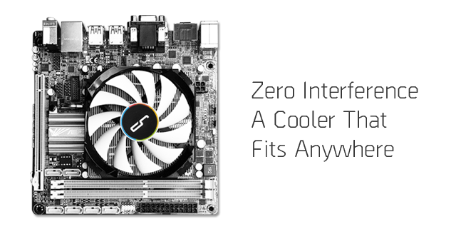 El C7 fue diseñado desde cero para ser un disipador que encaje en cualquier lugar y con cualquier configuración. Con unas dimensiones pensadas para cumplir con la zona de seguridad del procesador establecida por Intel y AMD, el C7 puede instalarse cómodamente en casi todas las placas base y también en prácticamente todos los chasis de PC, incluidos los compactos SFF de perfil más bajo.