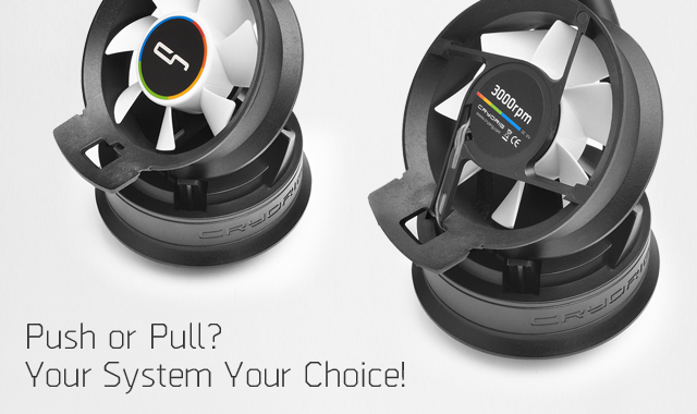 El ventilador Airflow patentado de CRYORIG también es ajustable tanto en configuraciones push como pull, y además puede cambiar de dirección según la forma en que se monte el bloque de refrigeración de la CPU. Ajusta el ventilador Airflow para que se adapte de la mejor manera al flujo de aire de tu sistema y así obtener la máxima eficacia. El ventilador Airflow de 70 x 25 mm, con un rango de 1500 a 3000 RPM, cuenta con control PWM y sincroniza su porcentaje de velocidad con los ventiladores del radiador QF120 o con los ventiladores duales QF140 con control PWM del A80.