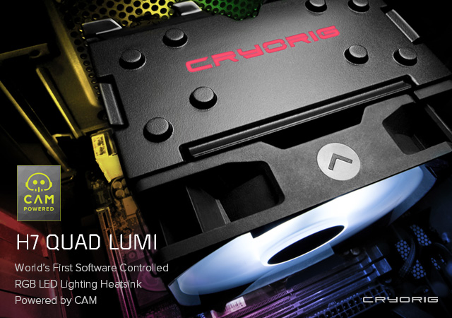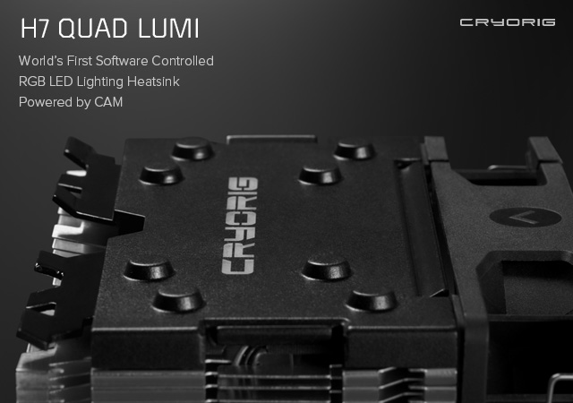 En su núcleo, el H7 Quad Lumi está basado en el exitosísimo CRYORIG H7. Además de la incorporación del sistema de iluminación Lumi, también se han introducido mejoras como una configuración de cuatro heatpipes de alto rendimiento para aumentar la capacidad TDP, un nuevo ventilador QF120 LED de 1.600 RPM y un sistema de montaje rediseñado.