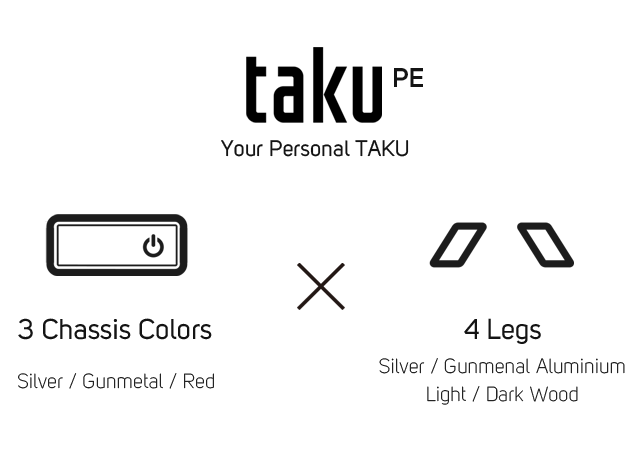 Como soporte para monitor, el Taku puede sostener pantallas de hasta 15 kg y permite colocar debajo un teclado mecánico completo de 104 teclas. La bandeja del sistema puede extraerse completamente del chasis para facilitar la instalación o actualización de los componentes del PC. En el lado izquierdo del Taku se encuentran dos puertos USB 3.0 y puertos de entrada/salida de audio. Un puerto USB Tipo-C estará disponible en revisiones posteriores. El Taku también incluirá dos orificios de gestión de cables en la parte frontal. Esto permite pasar los cables a través de la bandeja del sistema y conectarlos a los puertos traseros del Taku, ofreciendo una gestión de cables sencilla y limpia para líneas de carga USB de teléfonos o periféricos.